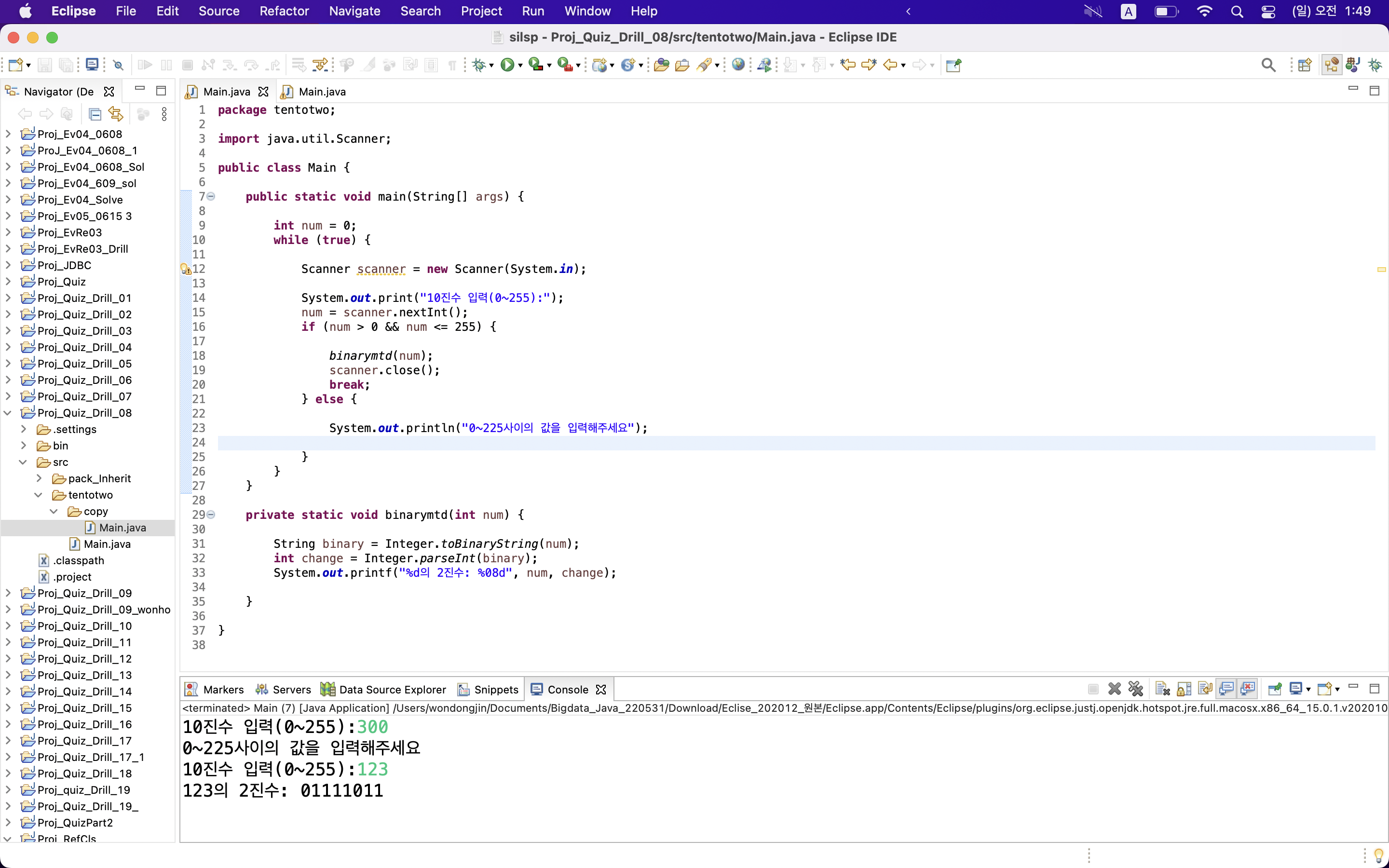 이 문제는 메인 클래스에서 작업 가능했다.